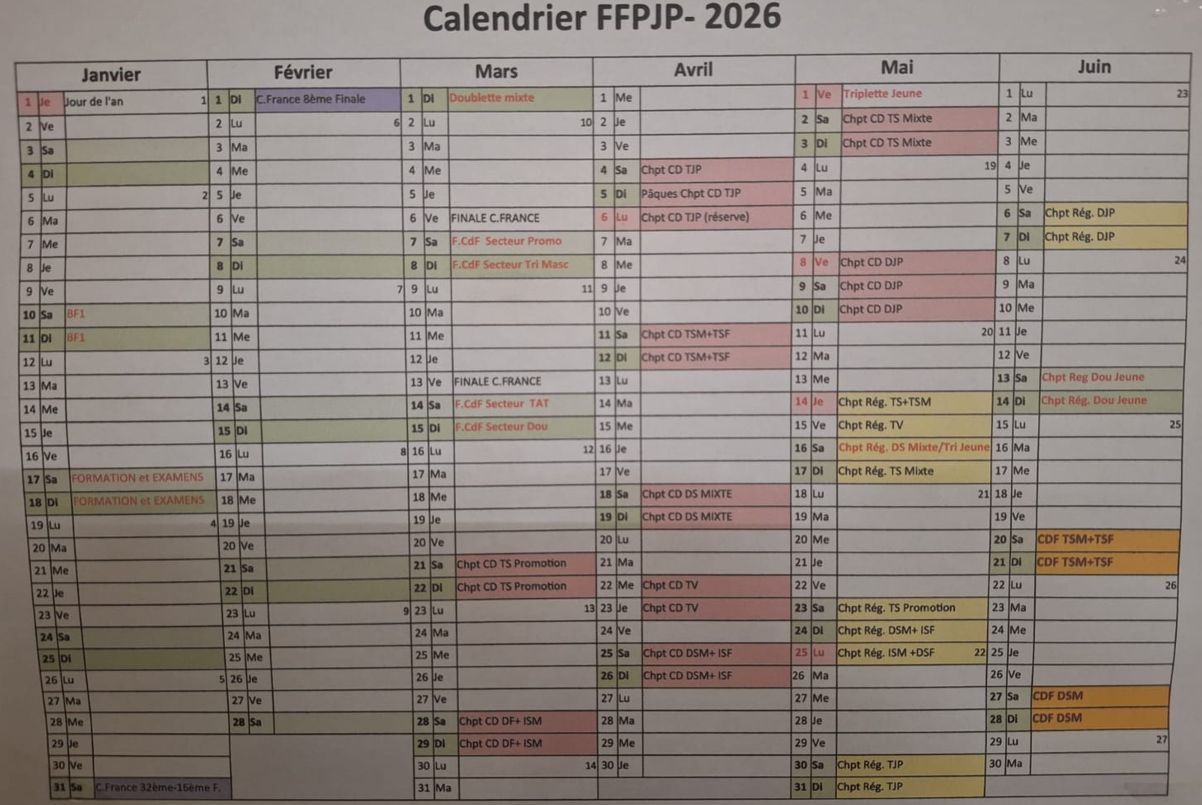 Calendrier secteur et fédéraux de janvier à juin 2026