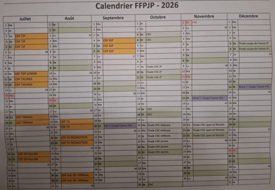CALANDRIER 2026 DES FEDERAUX AVEC LES DATES ET LIEUX