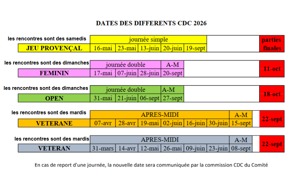 CALANDRIER 2026 DES FEDERAUX AVEC LES DATES ET LIEUX